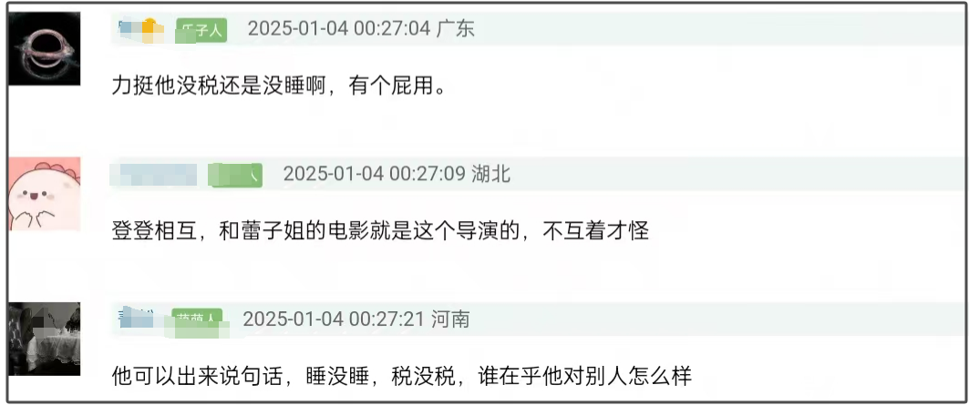 从这些业内发声来看,导演们多与张颂文有利益往来,不是收益不错的剧,就是电影没上映和正在播出的。而发声的小演员也几乎都没名气,但是受到过张颂文的指导,念这一份恩情。只是网友人间清醒,直接道明这些业内力挺并没有用,用单独对某个人或者某件事的正面评价不能证明张颂文的“税”和“睡”到底是否清白。