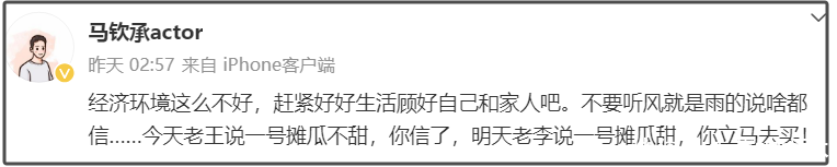 而在这条长文前,马钦承还阴阳了吃瓜网友,要大家别听风就是雨,好好生活。