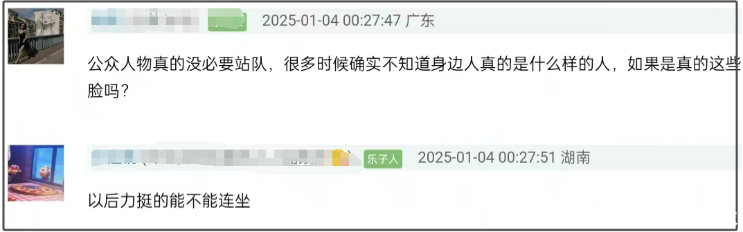 还有网友认为公众人物不应该随便站队,还没有吃够那些劣迹艺人翻车打脸的教训,对自己名声、公众信任、行业都不负责。